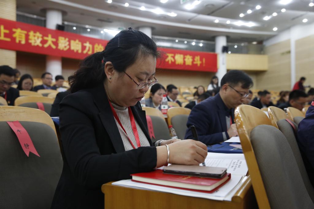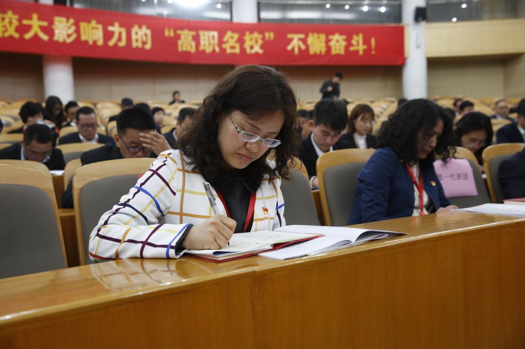在全场的热烈掌声中,我校党委书记金波代表中共杭州职业技术学院委员会作题为《勇担使命,砥砺奋进,为建设国内一流、国际上有较大影响力的“高职名校”不懈奋斗》的报告。本次大会主题是:高举习近平新时代中国特色社会主义思想伟大旗帜,以党的十九大精神为统领,认真贯彻全国教育大会精神和省市委决策部署,全面落实立德树人根本任务,全面加强党的领导,团结动员全校党员和师生员工,深化改革,聚力发展,勇担使命,砥砺奋进,加快建设国内一流,国际上有较大影响力的“高职名校”,为杭州加快建设独特韵味别样精彩世界名城、打造展示新时代中国特色社会主义的重要窗口作出新的更大的贡献。