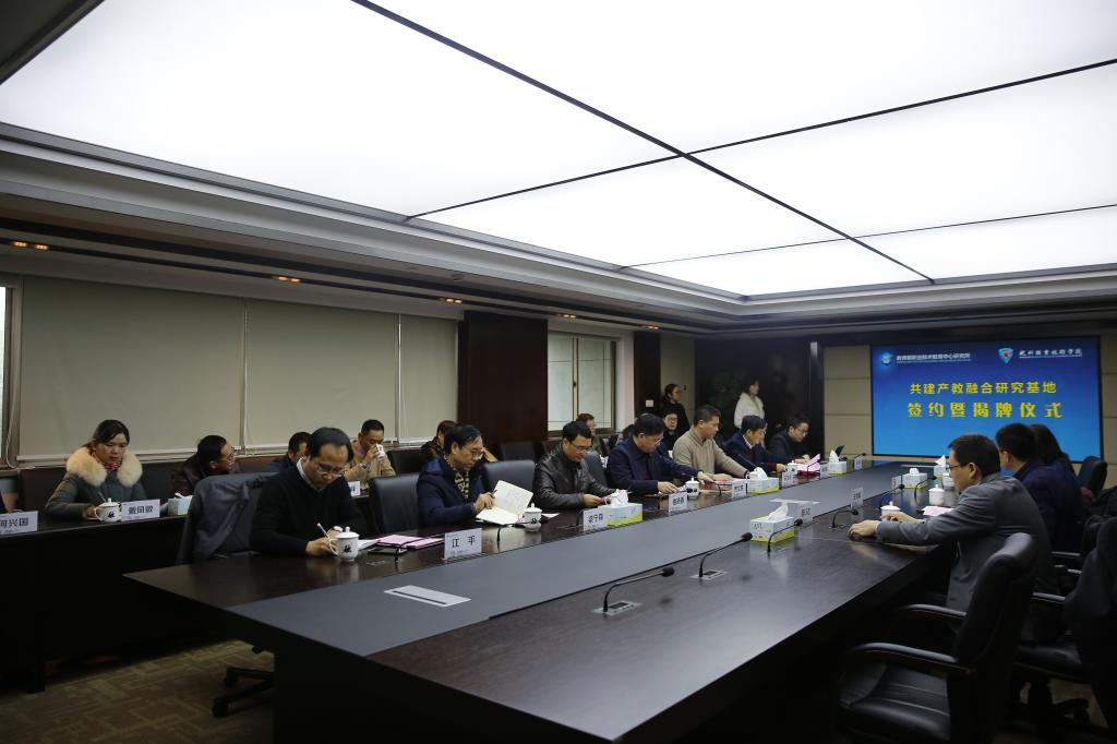 仪式结束后,双方围绕贯彻落实国家战略、推进学校内涵建设、跟踪职教热点研究等三个层面,对产教融合研究基地2019年度主要工作展开了热烈讨论。