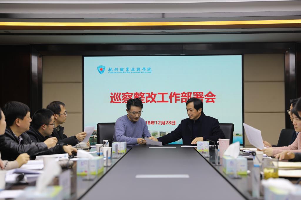 1228日下午,学校巡察整改工作部署会在行政楼第一会议室召开。学校领导班子成员和各部门、二级学院主要负责人参加会议。会议由党委副书记陈泉淼主持。