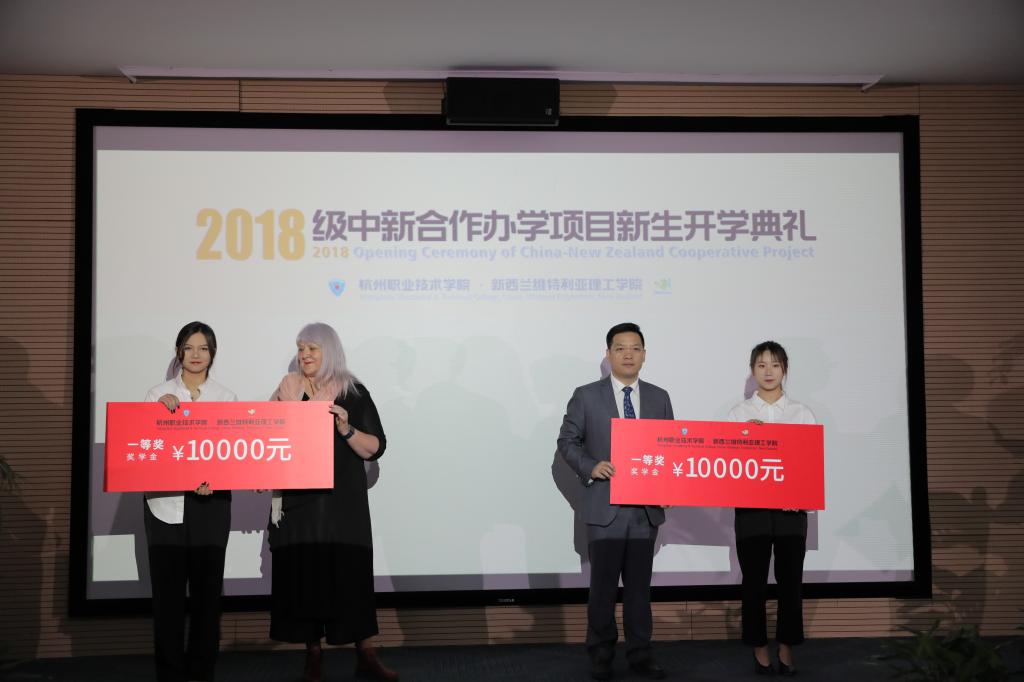 开学典礼上,学校为中新班的优秀学生颁发了新生奖学金。王玉珏代表动漫设计专业全体教师向同学们进入中新班学习表示祝贺,希望同学们充分利用国际合作办学平台,不断锻炼自我、提升自我。章倩代表新同学表达了拳拳之心,将以高度的学习热情,扎实的学习态度,乐观的生活方式,高昂的精神面貌,抓住机遇,努力奋进。