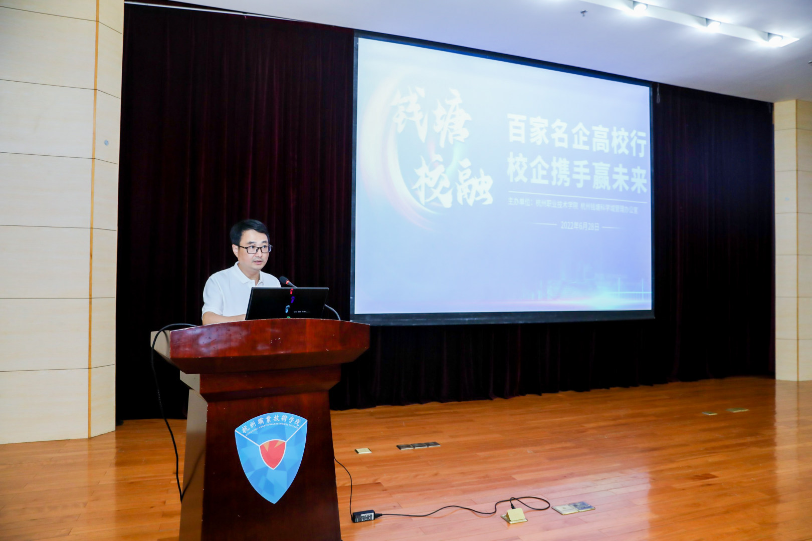 楼晓春首先对杭州钱塘科学城管理办公室百家名企高校行活动表示热烈欢迎,并简要介绍了杭州职业技术学院的整体情况。他表示,学校坚持“校企合作、工学结合、文化育人”的办学理念,秉持“立足钱塘区、服务杭州市、助力长三角”的办学定位,在全国首创“校企共同体”办学模式,走出了一条校企利益与共、文化相通、成果共享的高职教育“校企共同体”多元发展模式。产教融合融入钱塘产业,通过此次政府牵头促进校企交流的活动,校企政合作开展创新机制与平台,致力与钱塘同生共长。