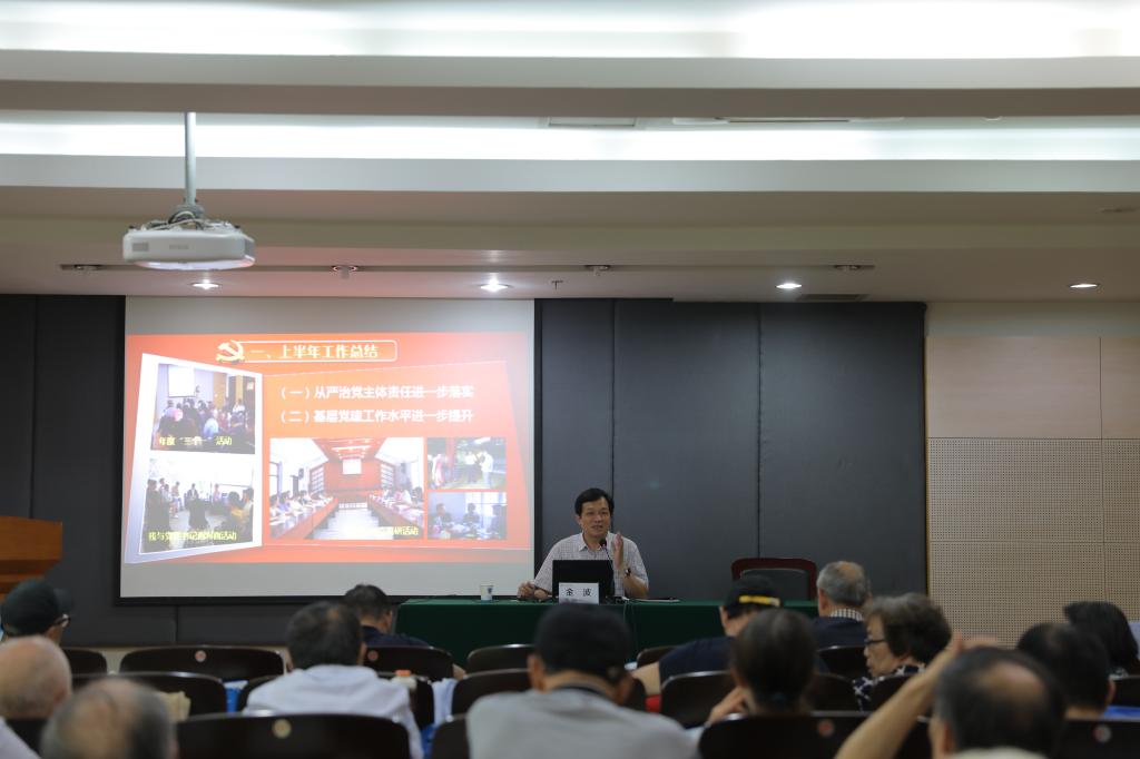 “七一”前夕,校党委书记金波为离退休党员上专题党课。50余名离退休老同志听取了党课,党课由离退管办副主任叶青青主持。