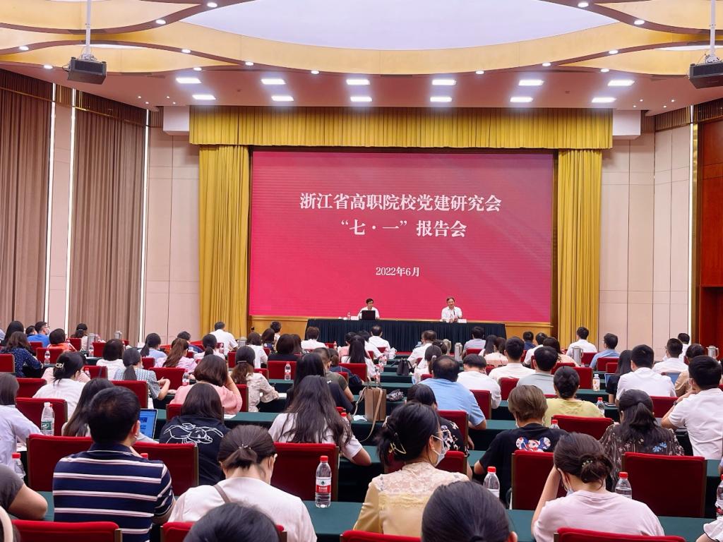 为迎接党的二十大胜利召开,做好省第十五次党代会精神的学习宣传贯彻,6月30日,由我校和浙江金融职业学院承办的浙江省高职院校党建研究会2022年“七·一”报告会在杭州之江饭店顺利举行。省委宣传部副部长、省社科联主席盛世豪受邀作题为《学习贯彻省第十五次党代会精神 争做“两个先行”践行者奋斗者》的专题报告。研究会会长、浙江金融职业学院原党委书记周建松主持报告会。我校党委书记金波,携宣传部、马克思主义学院相关负责人及思政教师代表、辅导员代表等16人一道参会。