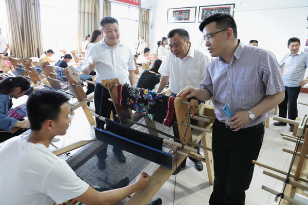 在张捷、董奎的陪同下,贾文胜一行观看了极具土家族特色的摆手舞展演,实地走访了政府订单班(乡村教师)实训室、生物工程学院实训室、西兰卡普大师工作室、茶艺工作室以及数控实训基地。