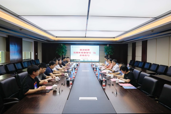 陈泉淼对陈金泉一行到校调研表示热烈欢迎,并简要汇报了学校有关情况。他表示,学校下一步将继续努力,遵循区委、区政府决策部署,推动钱塘文化繁荣发展、促进经济体系优化升级、实现文化产业高质量发展,努力为建设高水平现代化国际化一流新区、打造高能级战略平台贡献力量和智慧。