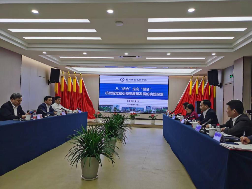 会上,湖州职业技术学院、浙江商业职业技术学院、杭州科技职业技术学院、浙江工业职业技术学院、浙江农业商贸职业学院、嘉兴职业技术学院分享了高质量党建引领职业教育高质量发展的新思路、新举措。
