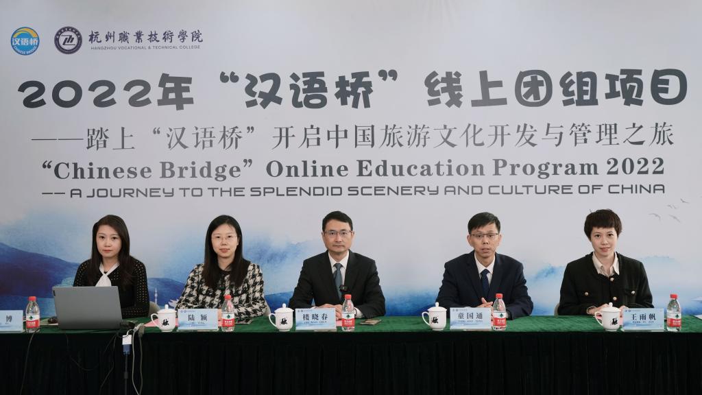 据悉,“汉语桥”线上团组项目由教育部中外语言交流合作中心主办,旨在整合国内优质职业技术与汉语教学资源,通过“职业技能+汉语”的模式,面向“一带一路”沿线国家人员开展职业素养提升与文化交流活动,进一步推动中国优质教育资源走出去,促进“一带一路”国家民心相通。项目自11月16日开营,为期十天,通过向学员介绍我国旅游开发与管理现状及发展,帮助其结合自身地区的独特资源和风貌,培育旅游优势产业,提高旅游管理相关业务技能。同时聚焦柬埔寨、越南等“一带一路”沿线旅游大国优质劳动力资源,对接杭州“后峰会、亚运会”时期承办国际会议、国际赛事、大型会展等对高端旅游业技术技能人才的需求,服务杭州城市国际化发展。