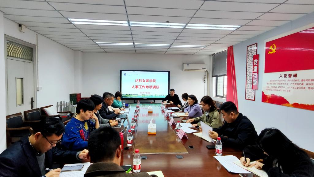 为进一步推进达利女装学院人才引进和培育工作,11月22日下午,副校长金徐伟携人事处处长龙艳、质评处处长戴凤微、教务处副处长许普乐等一行赴达利开展人事专项工作调研。达利女装学院院长郑小飞、党总支书记王天红、副院长刘桠楠及相关专业负责人出席了会议。