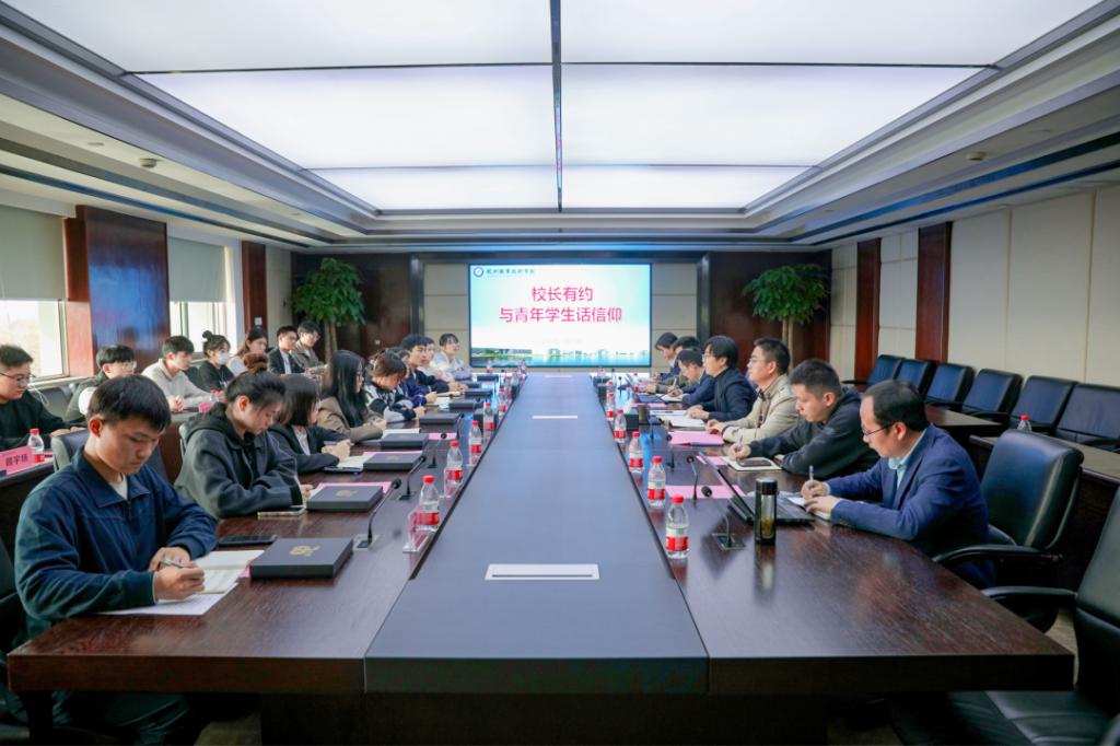 为深入学习贯彻党的二十大精神,进一步坚定信仰,把青年学生的思想统一到党的二十大精神上来,11月25日, “‘校长有约’——与青年学生话信仰”活动在行政楼528会议室进行。校长徐时清,办公室、宣传部、教务处、学工部、团委、后勤服务中心等职能部门负责人,以及九个二级学院的18位学生代表参加活动。