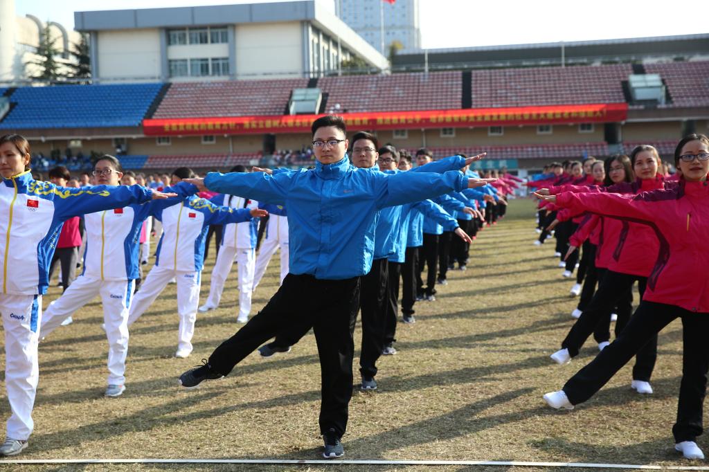 运动会开幕式上,伴着激昂奋进的运动员进行曲,由我院工会副主席付文军带领的教师方阵迈着整齐划一、坚定有力的步伐走进运动场,昂首挺胸,雄姿英发。接下来的团体广播操项目中,身着蓝、绿运动服的教师们随着音乐快乐地律动起来。教工们个个朝气蓬勃,动作规范整齐。一张一弛之间,用广播操表演和迷人的微笑彰显了杭职教职工的青春活力。太极拳协会的教工们在盛哲老师的带领下为大家展示了刚柔并济的太极之美。