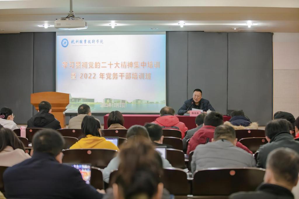 为深入学习贯彻党的二十大精神,提升党务干部的政治理论素质和履职能力,12月2日,我校举行学习贯彻党的二十大精神集中培训暨2022年党务干部培训班。机关党委、各党总支(直属党支部)负责人、党支部书记、组织员参培学习。