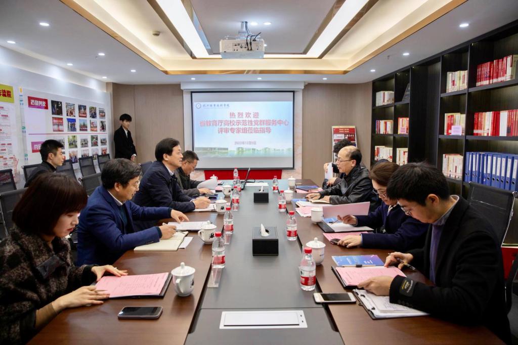 金波代表学校对评审专家组表示热烈欢迎,并简要介绍了学校办学情况和党建工作特色成效,陈泉淼详细介绍我校党群服务中心的功能布局、服务内容及运行机制等情况。评审专家组对我校党群服务中心功能设置和主题展陈给予充分肯定,希望我校党群服务中心进一步健全机制,强化服务示范,打造独具高职特色的示范性党群服务中心。