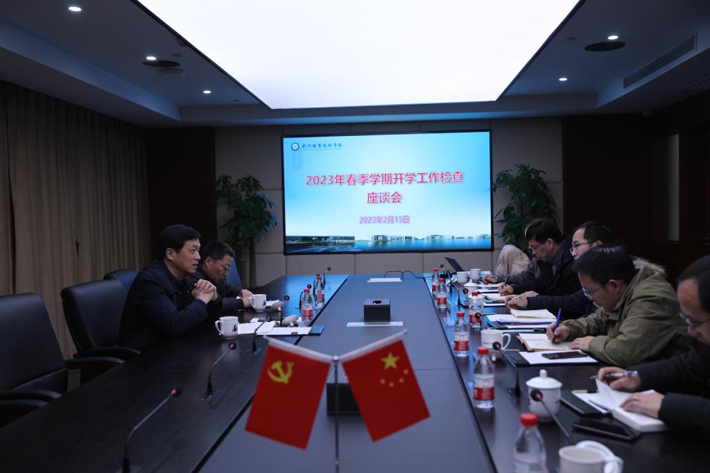 2月15日上午,学校党委书记金波、党委副书记陈泉淼一行带领办公室、宣传部、教务处、学工部、保卫处、后勤服务中心等部门负责人走访校园各个角落,检查新学期开学前各项准备工作的落实情况,确保新学期开好局、起好步,实现“开门顺”。金波一行逐一走访查看校内发热门诊点、智能门禁系统、健康驿站、含晖苑宿舍区、锦晖苑宿舍区、师生食堂、校园超市、烘焙房、理发店等,仔细检查制度落实、物资保障、卫生清洁、消防安全和工作预案等准备情况,并现场提出相关要求。