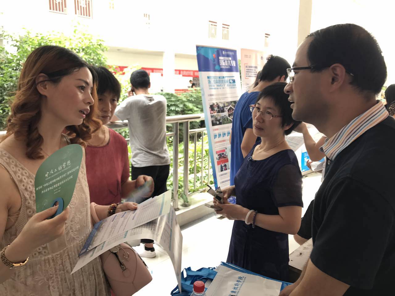 七月,全省各地高温酷暑,挡不住考生的热情,各咨询点人山人海,现场火爆,全体咨询老师更是激情火热、信心十足,耐心的解答每一位来咨询的考生,展现了杭职院良好的精神风貌;今年学校特意印制了一批环保文件袋,方便考生存放咨询资料,“杭职蓝”成立咨询现场的一道靓丽的风景线。