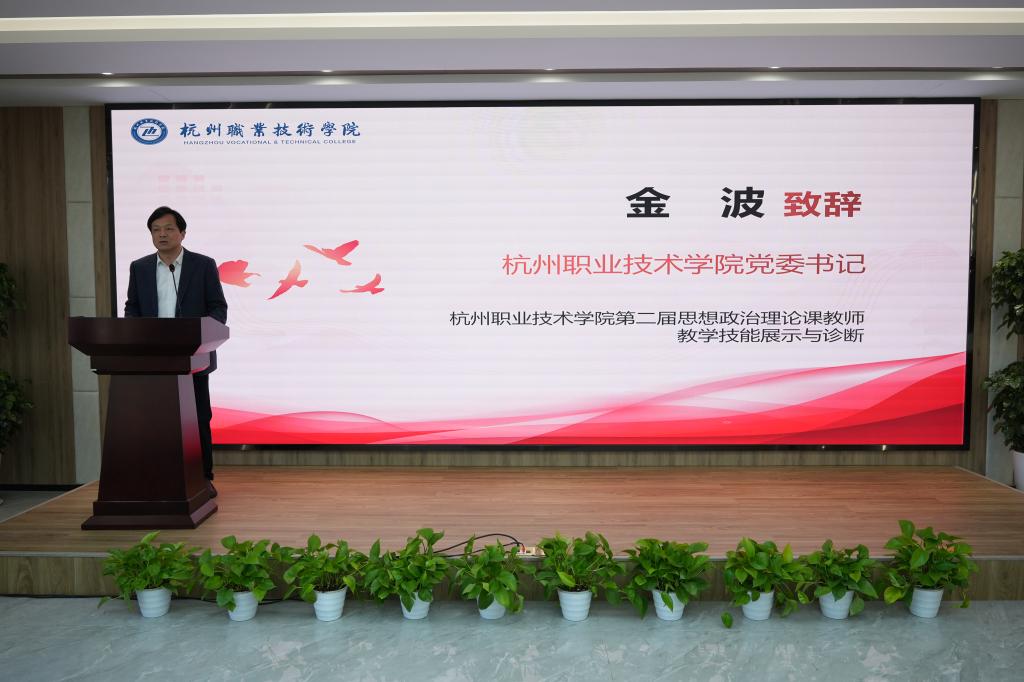 3月6日下午,学校第二届思想政治理论课教师教学技能展示与诊断活动在明德讲堂举行。此次活动由学校党委宣传部、质量监控与评估处、教师发展中心、教务处、党委学工部联合指导,马克思主义学院主办。学校党委书记金波出席活动并致辞,指导部门负责人出席活动并担任评委。活动特邀浙江财经大学马克思主义学院院长贺武华、杭州电子科技大学马克思主义学院院长王海稳、浙江经济职业技术学院马克思主义学院院长梁丽华担任评审专家,现场诊断指导。马克思主义学院院长邹宏秋、副院长王志强分环节合作主持活动,全体思政课教师参加活动现场观摩。