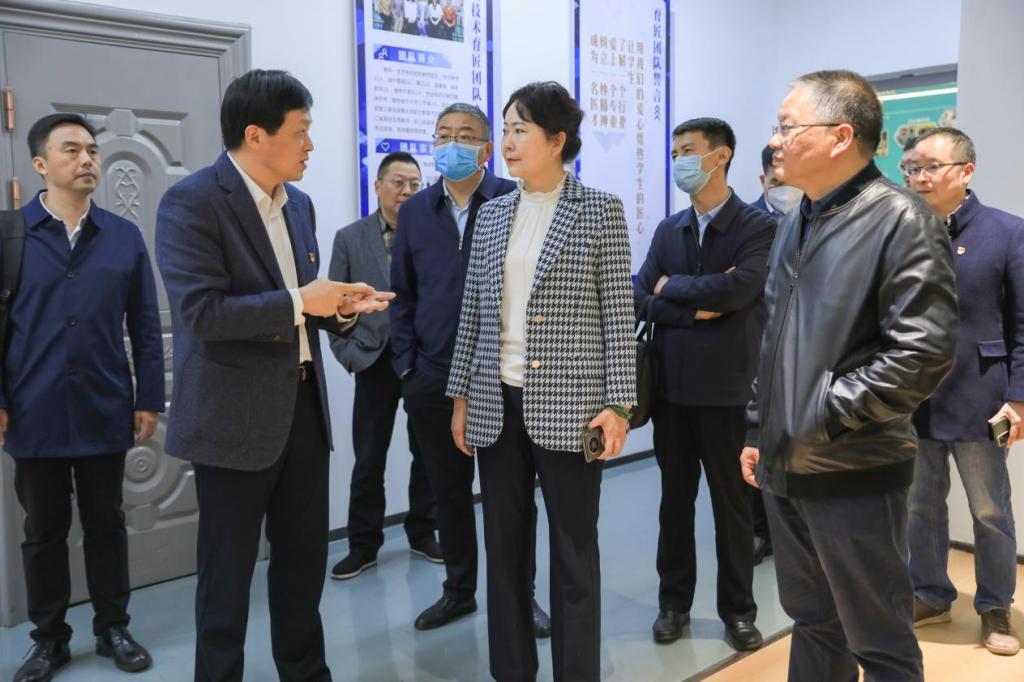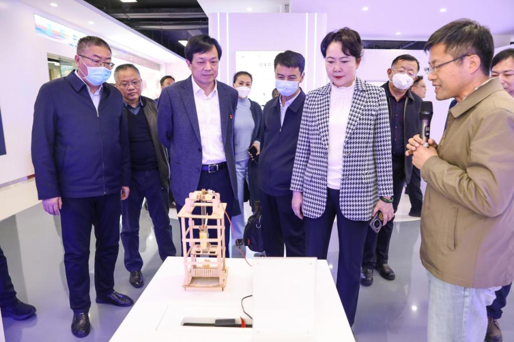 王新春一行依次参观了友嘉智能制造学院、特种设备学院电梯实训中心和华为云计算学院展厅。陪同调研期间,金波书记简要介绍了学校的办学情况、发展历史、办学特色和办学成效。相关分院负责人详细介绍了产教融合、校企合作的持续探索与生动实践,形象展示了实训室、应用技术协同创新中心、科普教育基地建设成效。
