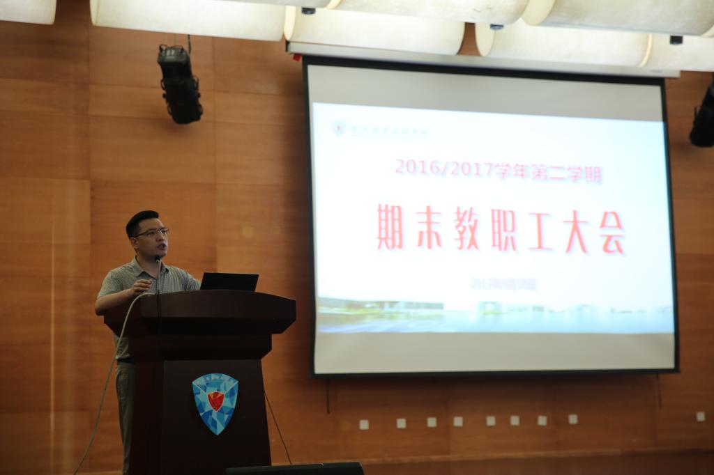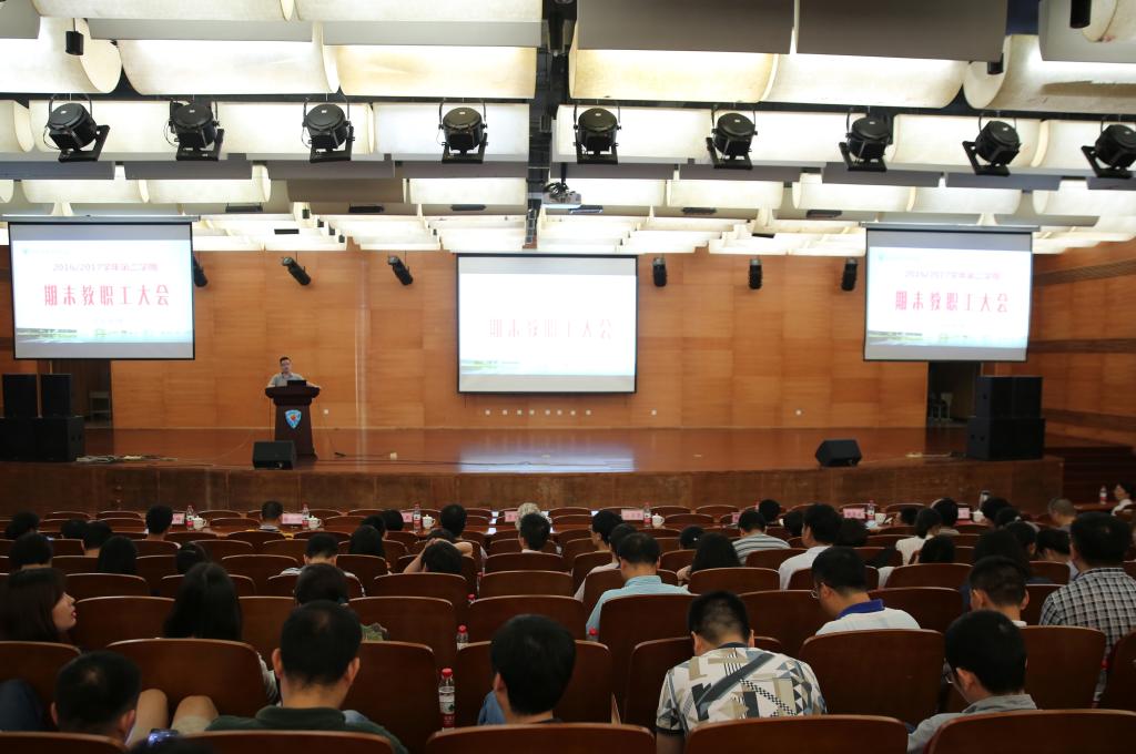 630日下午,我校在图书馆报告厅召开2016/2017学年第二学期期末教职工大会,学校党政班子成员、全校教职工出席大会,会议由校长贾文胜主持。