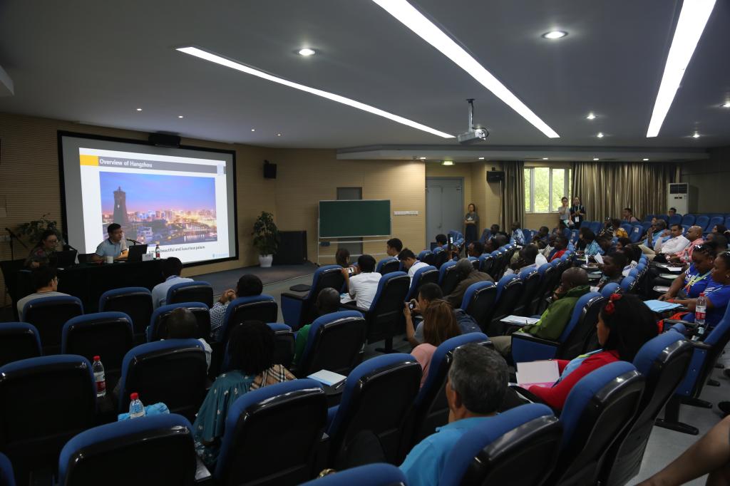 619日下午,2017年发展中国家职业技术教育教师研修班在我校行政楼第四会议室举行开班仪式。我校校长贾文胜、副校长陈加明出席,国际交流合作处、继续教育学院相关负责人,来自马拉维、南苏菲、肯尼亚等17个国家的近70名学员共同参加仪式。