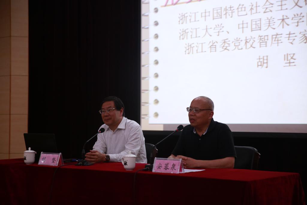5月23日下午,学校行政楼二楼报告厅里座无虚席,学校特邀请原浙江省委宣传部常务副部长,现浙江中国特色社会主义理论体系研究中心主任、浙江生态文明研究中心主任、浙江省委党校智库专家胡坚教授来校作客第二十六次党委理论中心组(扩大)学习会,作了题为“当前意识形态工作的形势与任务”的专题报告。学校党政领导班子成员,全体处级及以上领导干部、专业负责人,全体党员、辅导员、思政老师近400人聆听了报告会。报告会由校党委书记安蓉泉主持。