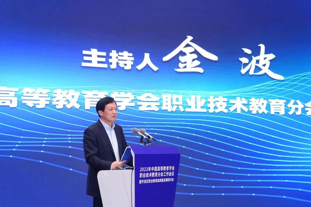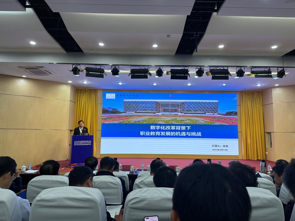 4月14日,党委书记金波出席中国高等教育学会职业技术教育分会工作会议,作专题报告并主持分论坛专题研讨。