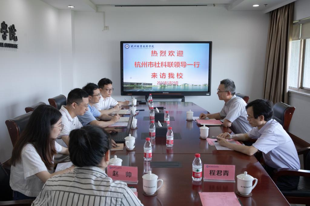 5月29日上午,杭州市社科联副主席苏晓松和科研管理处长孙立波一行来我校调研指导。副校长楼晓春,发展研究中心及“现代职业教育研究中心”基地相关课题负责人参与调研座谈会。