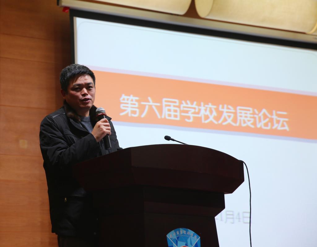 1月4日下午,第六届学校发展论坛在图书馆一楼报告厅举行。校长贾文胜、副校长许淑燕、纪委书记陈泉淼出席论坛。论坛由许淑燕主持,华东师范大学职业教育与成人教育研究所徐国庆教授和匡瑛副教授作为点评专家,我校300余名教职工参加论坛。