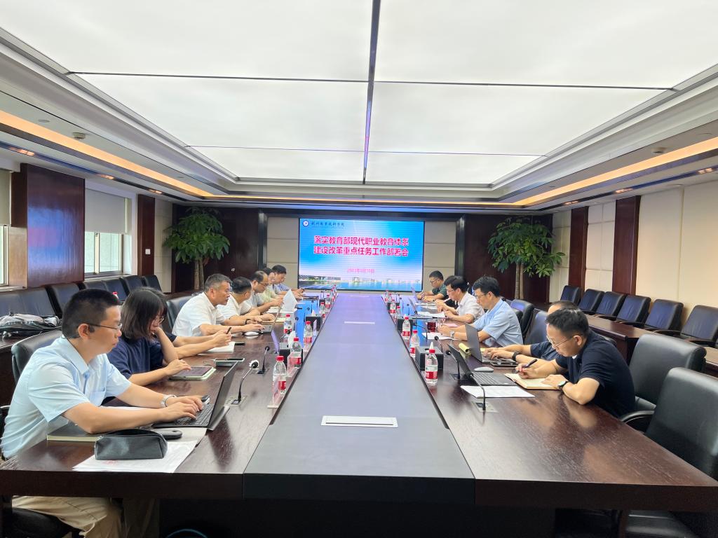8月10日下午,学校在行政楼528会议室召开落实教育部现代职业教育体系建设改革重点任务部署会。副校长楼晓春、相关职能部门负责人、各二级学院院长等参加会议。