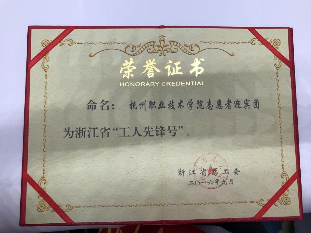 我校志愿者欢迎团喜获“浙江省工人先锋号”荣誉称号,由我校志愿者欢迎团负责人何霞红老师代表领奖。