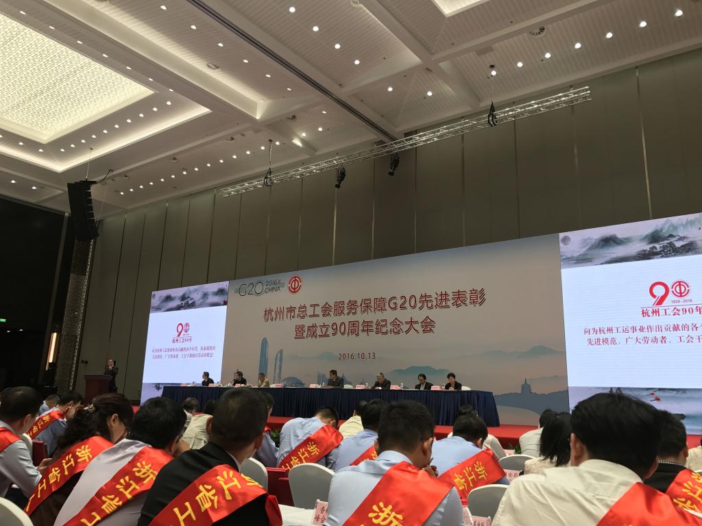 10月13日,杭州市总工会在杭州国际博览中心召开“服务G20先进表彰暨成立90周年纪念大会”,对杭州G20峰会期间付出艰辛努力的工作人员进行表彰。