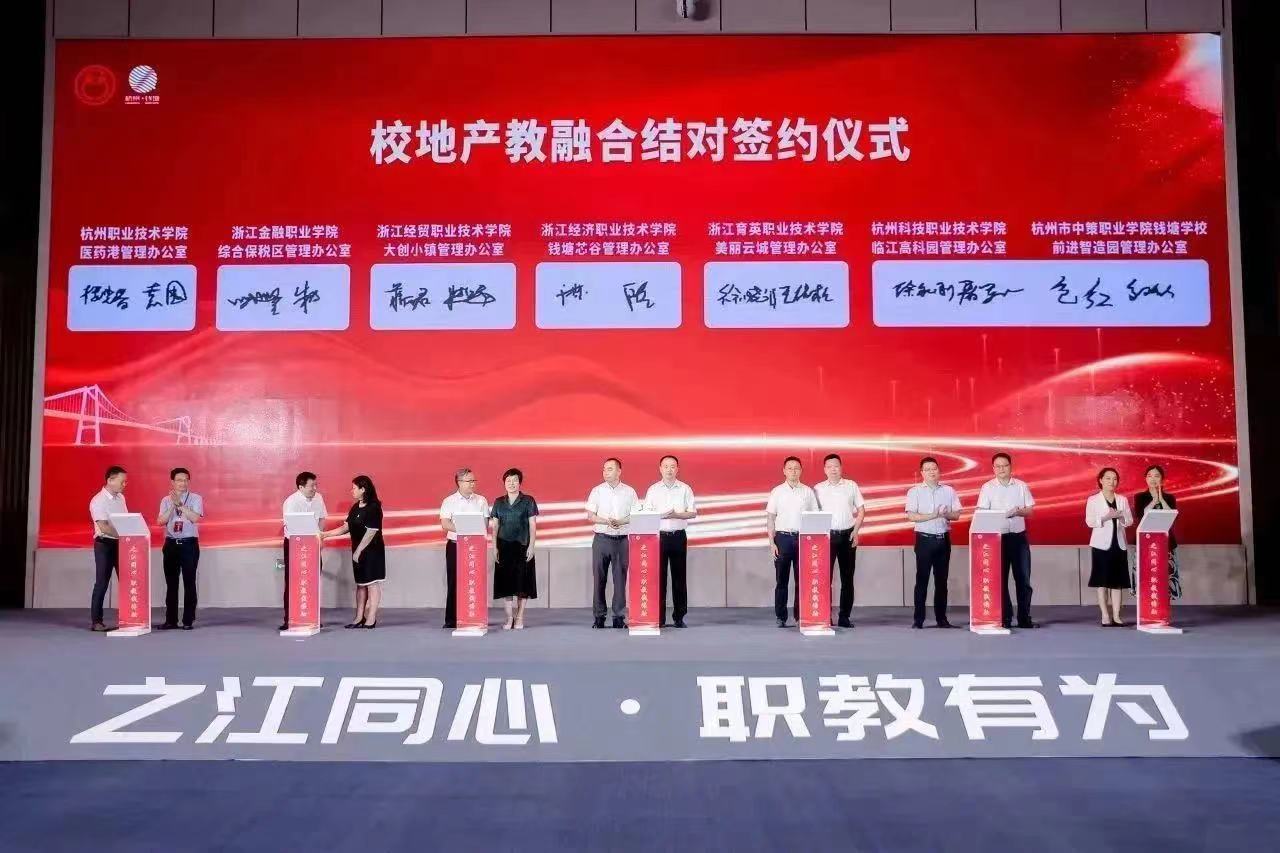 9月12日下午,钱塘区中华职业教育社成立大会暨“深化产教融合 赋能产业新城”主题活动在杭州市国际创博中心召开。省中华职教社主任陈小平、省委统战部副部长王利月、市中华职教社主任周智林、钱塘区委书记金承涛、钱塘区统战部部长周伟东等领导到会祝贺。我校副校长楼晓春带队参加会议。