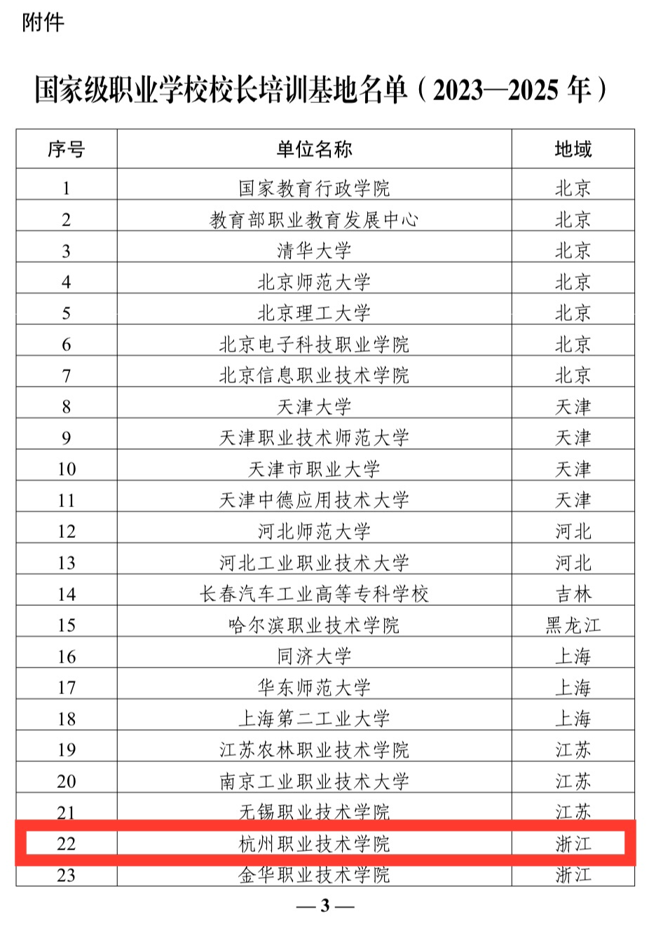 近日,教育部办公厅教师厅函(2023)21号发布了“国家级职业学校校长培训基地(2023-2025年)的通知”,教育部遴选确定了43个国家级职业学校校长基地名单,全省仅3所,杭职院榜上有名。