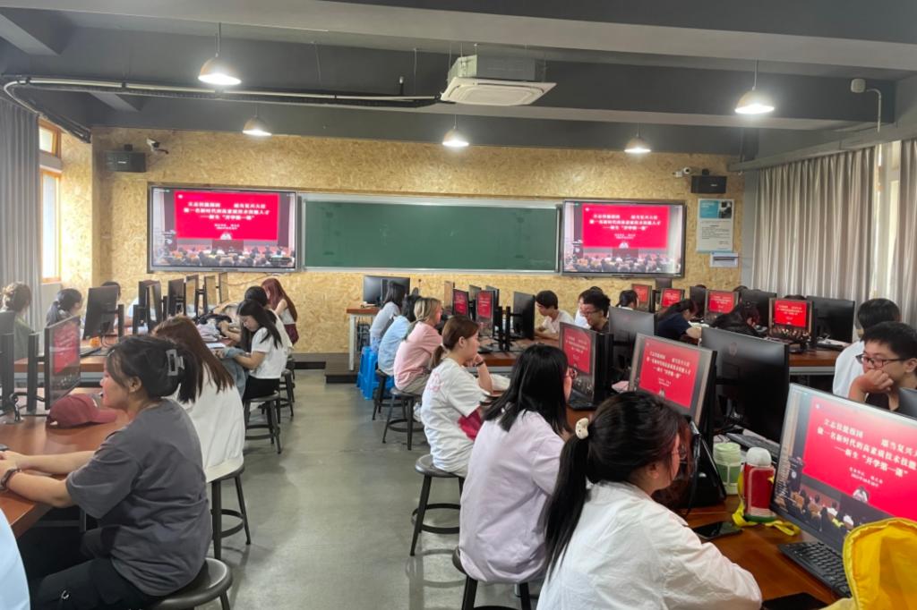 各二级学院、服务保障杭州亚残运会的群演团体和 “小青荷”志愿者分别在分会场、大莲花和保障场馆同步听取“开学第一课”。