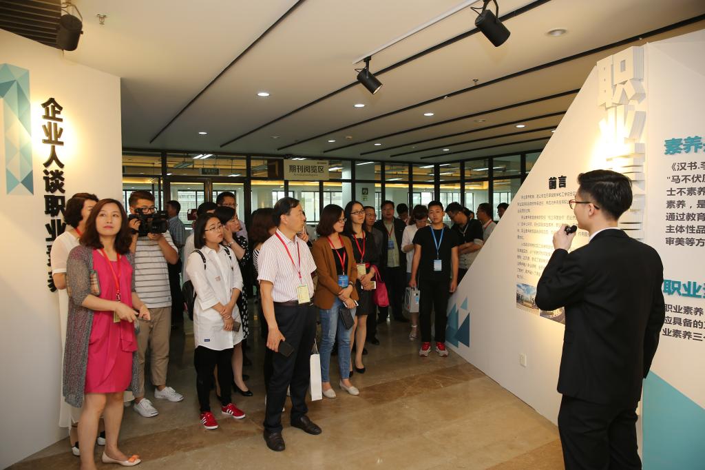 会议期间,与会人员参观了我校的友嘉机床博物馆、校史馆、职业素养展示中心、非遗传承教学创业基地等文化素养教育场馆。职业素养展示中心共分四大部分,分别从企业人谈职业素养、职业素养教育实施步骤、课堂实施、杭职小故事等,通过具体的图片、文字、视频、案例等,充分呈现了我校开展职业素养教育的理念与实践。这种在校内建立职业素养展示中心的做法,在高职院校中尚属首例。学校对学生职业素养教育理论研究的系统性、实践做法的操作性和成果提炼的可视性,得到了与会人员的高度评价。大家认为,我校对学生职业素养的教育做得很深入、很细致、很扎实,理念超前、设计清晰、实践丰富、成果丰硕,为其它高职院校开展人文素质教育提供了很好的思路借鉴。
