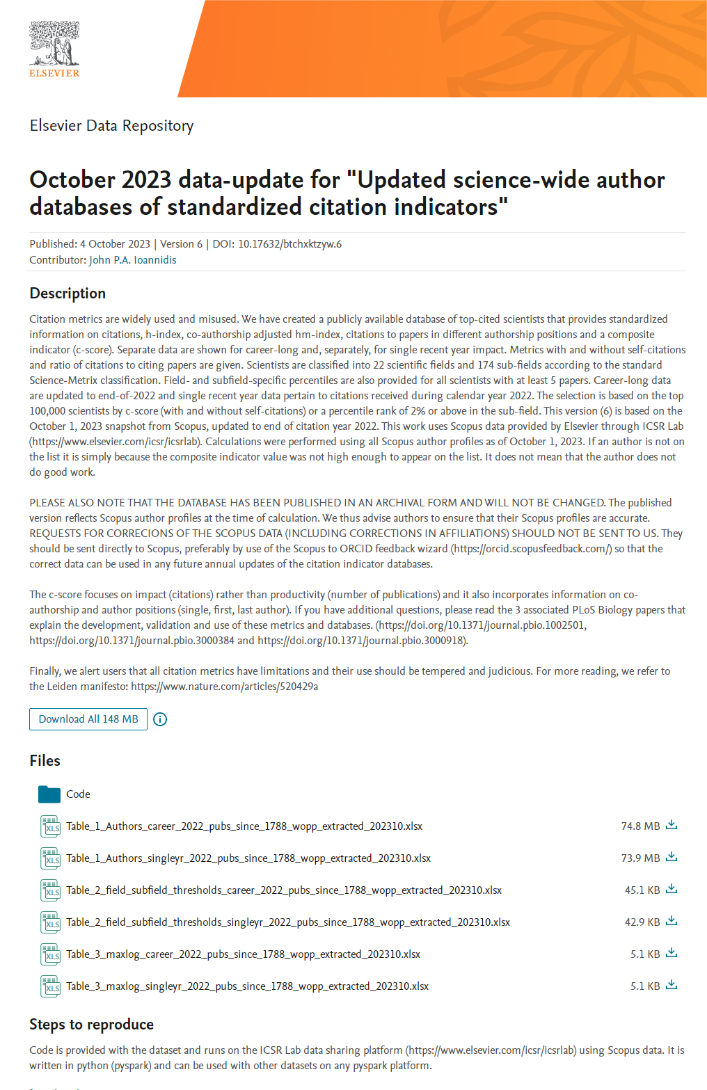 2023年10月,Elsevier旗下的Mendeley Data网站发布了全球前2%顶尖科学家榜单(World’s Top 2% Scientists),榜单分为“终身科学影响力排行榜”和“年度科学影响力排行榜”两项,从近700万名科学家中遴选出世界排名前2%的科学家。
