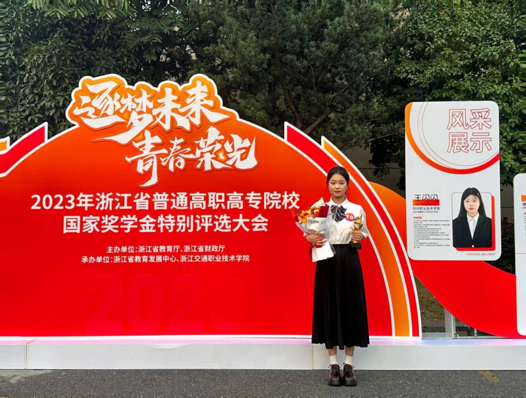 经过激烈角逐,王闪闪脱颖而出,最终斩获浙江省高职高专院校国家奖学金特别奖。浙江省高职高专院校国家奖学金特别奖每年全省普通高职院校仅10位学生获得此项殊荣,是目前各类学生奖学金荣誉中级别最高的奖项。