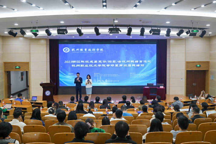 11月15日下午,2023浙江科技成果竞价(拍卖)会杭州钱塘首选地杭州职业技术学院专场暨第四届钱塘拍活动在学校行政楼二楼报告厅隆重举行。本次拍卖会由杭职院与杭州市科技局联合主办,浙知交(杭州)知识产权运营有限公司、浙江理工大学(杭州)技术转移有限公式承办,杭州钱塘科学城管理办公室、钱塘区经济信息化和科学技术局、杭州医药港管理办公室协办。