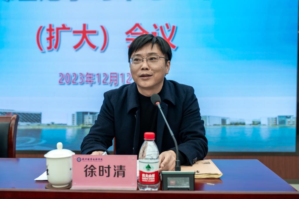 校长徐时清交流了学习贯彻习近平总书记考察浙江重要讲话精神的思考体会,他从新校区建设、双高计划绩效评价、教育教学改革、科研与社会服务等方面,对学校的近期重点工作作了部署。他要求进一步建立高质量发展体系,优化标志性成果清单,通过优化顶层设计、关注内涵质量、注重廉政纪律、确保安全稳定,推进学校的高质量发展。
