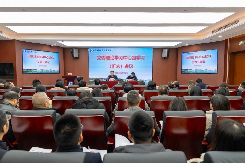 12月12日下午,杭州职业技术学院党委理论学习中心组学习(扩大)会议在行政楼117会议室召开。学校领导班子成员陈文岳、徐时清、陈泉淼、高云飞、金徐伟、楼晓春、程利群、麻朝晖,学校副校级领导张洪宪,以及全体中层以上干部参加会议。会议由校党委书记陈文岳主持。