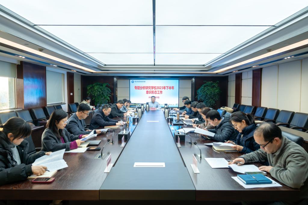 12月25日下午,学校在528会议室召开2023年下半年意识形态工作分析研判会,深入学习贯彻习近平文化思想,贯彻落实全国、全省宣传思想文化工作会议精神,系统总结分析学校下半年意识形态工作,研究部署下一阶段意识形态领域重点工作。学校领导班子成员参加,校党委书记陈文岳主持会议并讲话。