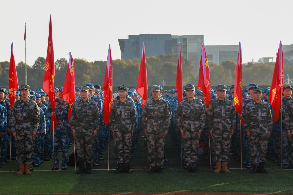 在嘹亮的中国人民解放军军歌声中,我校2023级学生军训开训仪式圆满结束,各营按计划展开了军事训练工作。