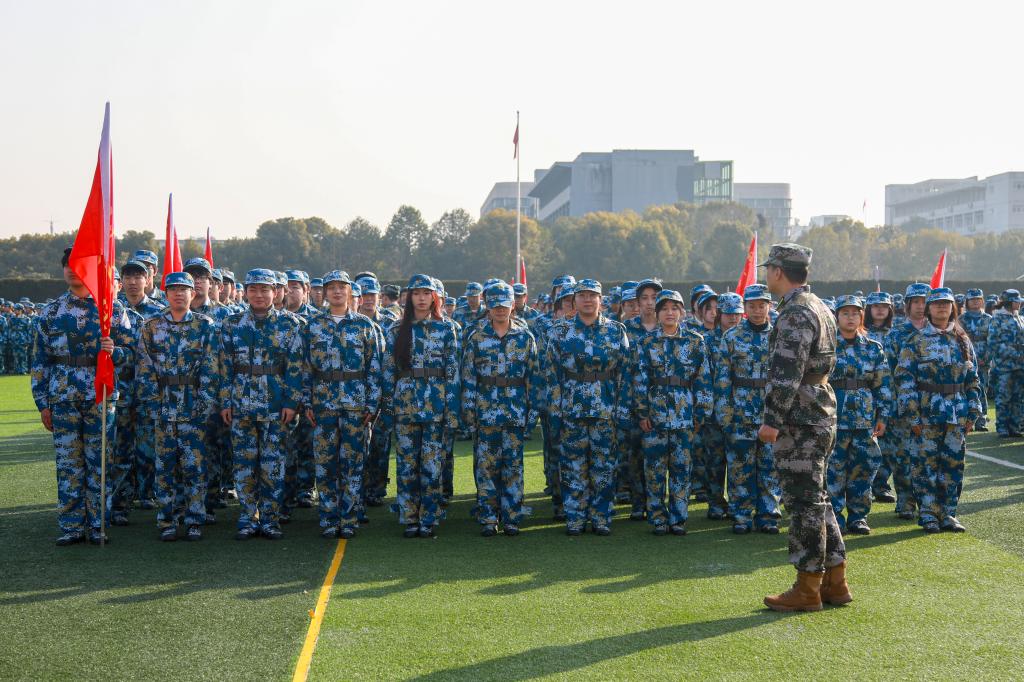开训仪式上,校人武部部长江平宣读了本次军训团编制;总教官金宇楠下达了军训任务;公共基础部副主任朱尧平宣读了军训纪律和教学训练规定;教官代表陈梦楠和参训学生代表崔畅进行发言。