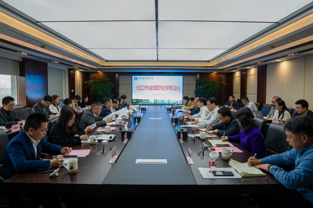 3月26日下午,校长徐时清在528会议室主持召开3月份行政工作例会暨国际化办学专题会议。党委副书记赖明诚,党委委员、副校长袁俊、楼晓春、程利群,二级学院院长,办公室、科研处、马克思主义学院、公共基础部等行政部门和教学单位相关负责人参加会议。