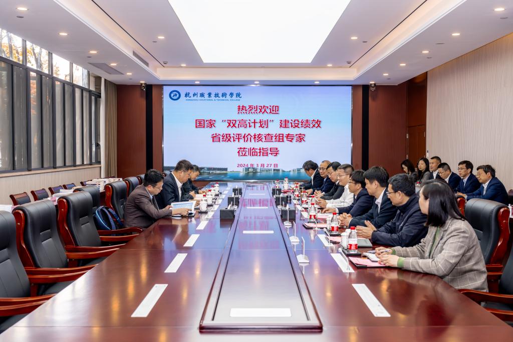 在反馈环节中,专家组对学校“双高计划”建设取得的成果和成效给予了高度肯定。专家组表示,学校聚焦服务国家战略和区域经济发展,坚持全局谋划、系统推进,如期完成了“双高计划”建设任务和绩效目标,做到了建设实、能引领、有创新,形成了独特的职业教育发展模式。同时,专家组殷切希望学校能够继续坚守职业教育的初心和使命,怀揣着对职业教育的坚定信念和勇气,为推动新时代职业教育改革和发展贡献“杭职力量”。