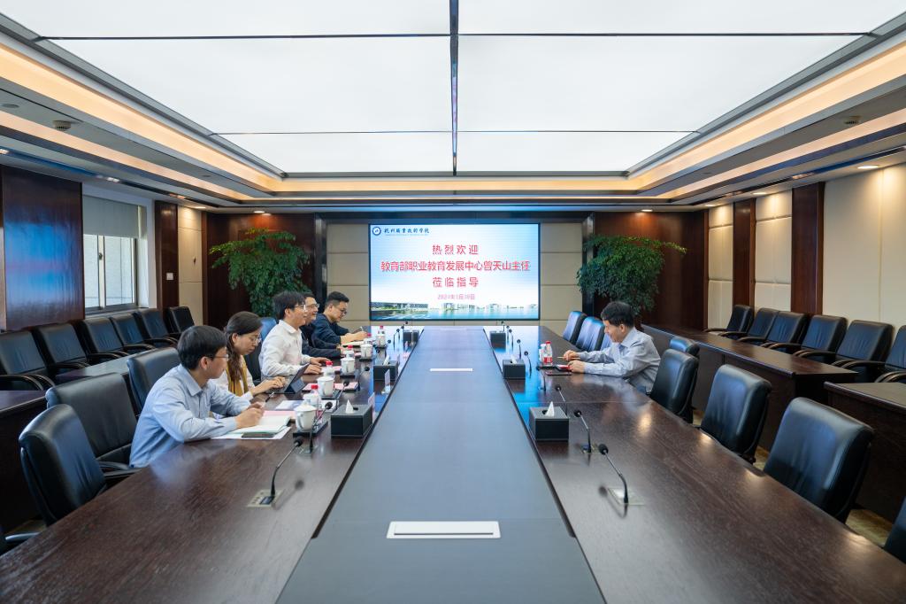 3月30日下午,教育部职业教育发展中心副主任曾天山莅临我校考察调研市域产教联合体建设工作。校长徐时清、副校长楼晓春、钱塘科学城管理办公室副主任韩翠华参加调研座谈。