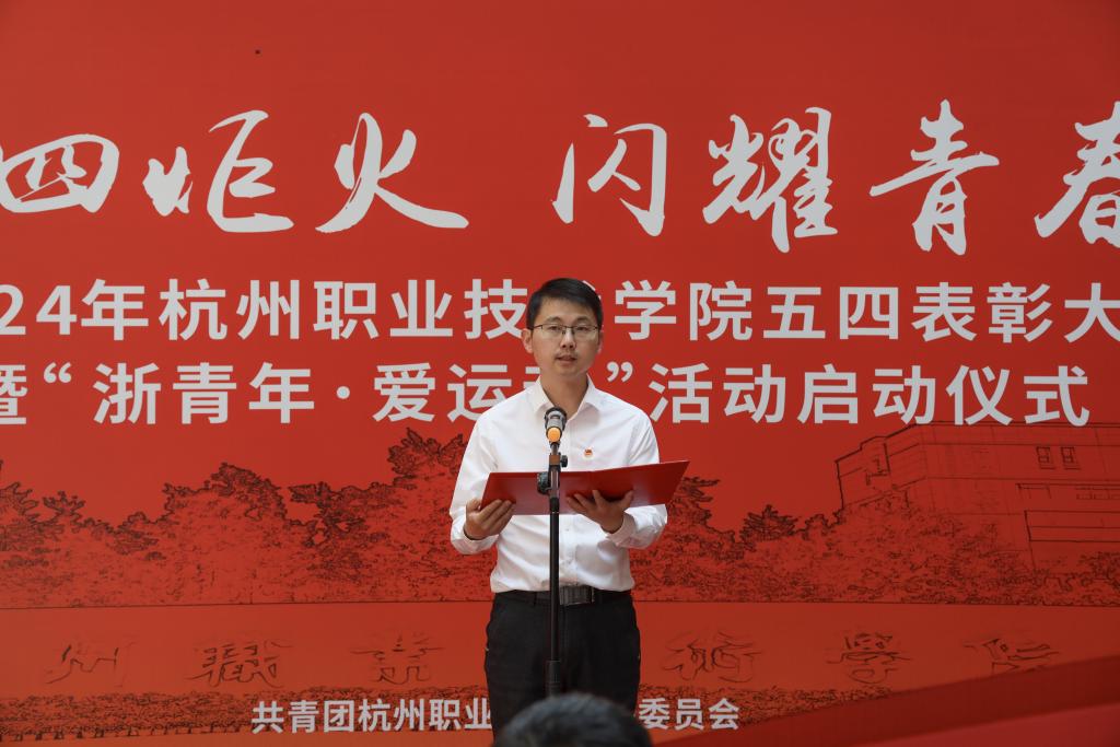 为进一步传扬“爱国、科学、民主、进步”的五四精神,激励团员青年在新时代新征程中挺膺担当,5月8日下午,我校举行“传承五四炬火闪耀青春荣光”2024年杭州职业技术学院五四表彰大会暨“浙青年·爱运动“活动启动仪式。学校党委委员、副校长程利群,共青团杭州市委学校与权益部部长叶景明,学工部、团委、各二级学院师生代表出席本次活动。