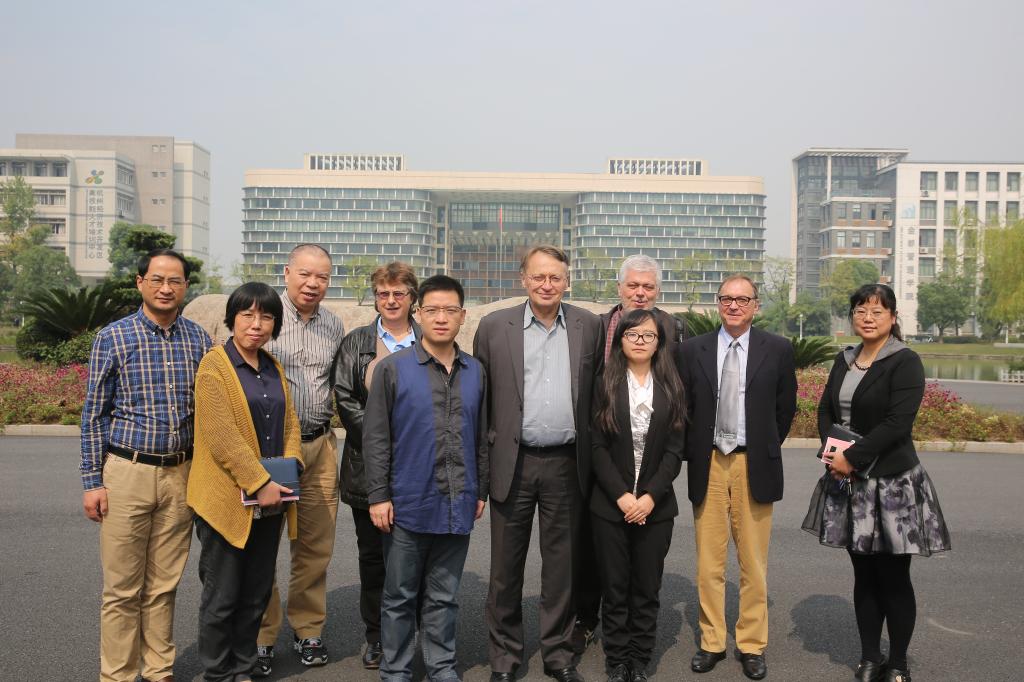 10月14日上午,由法国普瓦提埃学区中法项目高级专员克劳德•高达尔、Bourcefranc滨海学校海洋文化专业负责人玛丽安•佩利兹、拉罗谢尔酒店职业学校校长塞瑞里•杰尼斯、普瓦提埃大学视听专业硕士点负责人丹尼斯•博瓦斯、普瓦提埃学区中法项目高级专员助理谌兴脂等组成的法国普瓦提埃大区教育代表团一行5 人,在浙江省教育国际交流协会专职副秘书长何杏华的陪同下来访我校。我校校长贾文胜及外事办、新通国际学院、金都管理学院等相关部门负责人参与接待。