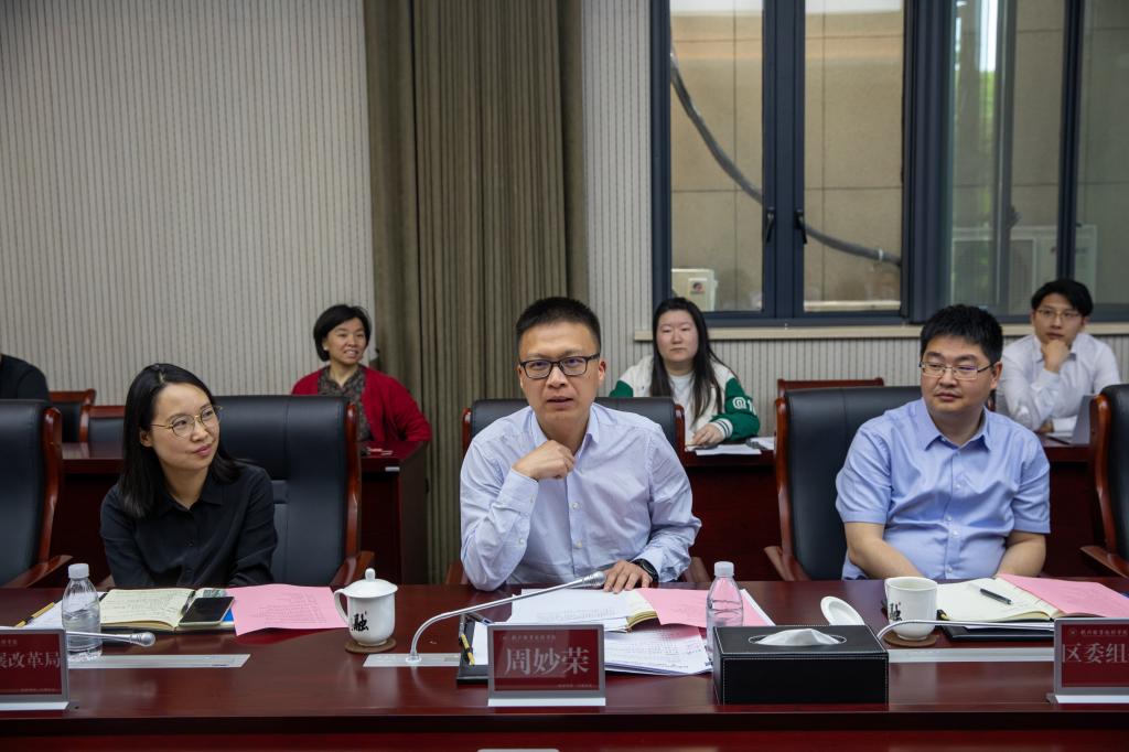 周妙荣认真聆听了校企双方的发言,同与会人员开展了热烈的交流与讨论。他强调,区政府始终高度重视产教联合体的建设工作,积极营造产教融合共赢氛围,此次“送智入企”行动也是学校贴近产业、靠近行业、融入企业的主动尝试。他强调,企业要提高社会责任感,把握好合作机遇,深入挖掘岗位需求,用好博士资源,校企联合培养优秀人才,助力区人才队伍建设,反哺产业能级提升。