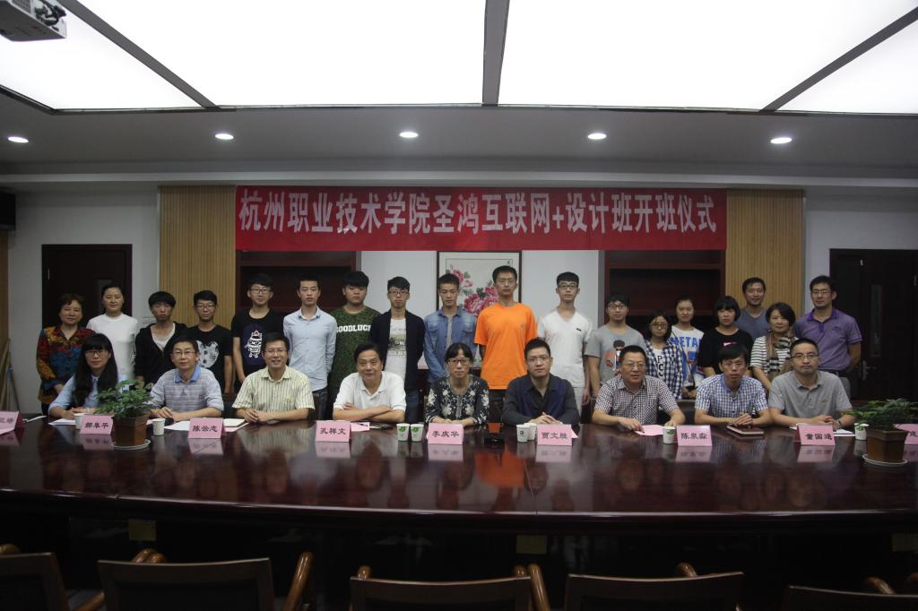 9月29日下午,杭州职业技术学院-圣泓工业设计创意有限公司“互联网+设计”定制班的开班仪式在信息工程学院会议室召开。圣泓工业设计创意有限公司董事长李庆华,国家工业设计产业技术创新联盟秘书长孔祥文,我校校长贾文胜,校党委委员、纪委书记陈泉淼,以及专业建设指导处、友嘉机电学院、信息工程学院、产学合作处相关负责人出席,来自信息工程学院、友嘉机电学院的相关专业负责人、班主任及“圣泓班”的全体12名学生参加了本次活动。