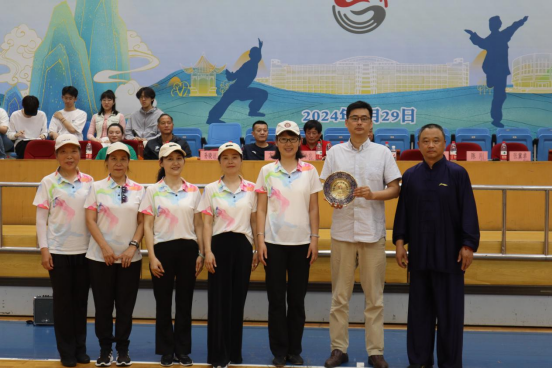 表演中,太极扇队的队员们身着统一的太极服,手持精美的太极扇,伴随着悠扬的音乐,开始了他们的表演。他们步伐稳健、动作流畅,扇子的开合与身体的转动完美配合,将太极扇的精髓展现得淋漓尽致。经过评委的严格评选,融善老年大学太极扇队凭借出色的表现荣获了特别贡献奖。这一奖项不仅是对他们技艺的肯定,更是对他们传承和弘扬太极拳文化的认可。