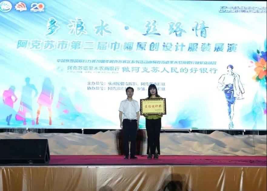 经过现场的综合评审,最终评选出了一等奖1名、二等奖2名、三等奖3名,优秀组织奖4名,杭州职业技术学院达利女装学院的优秀学生作品喜获最佳设计奖,杭州援疆指挥部党委书记、指挥长邵小军为杭州职业技术学院颁发了奖牌。
